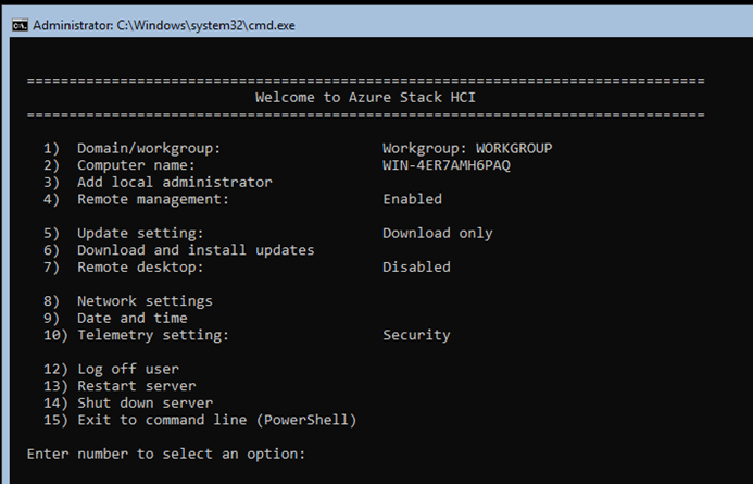 Şifre belirlendikten sonra Azure Stack HCI ana ekranına erişebiliriz. Bu aşamadan itibaren IP adresi, domain katılımı gibi temel konfigürasyonları yapmaya başlayabiliriz.